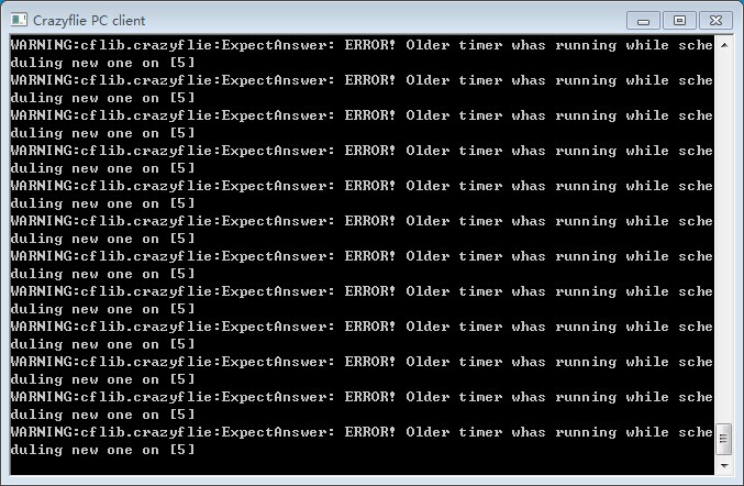 ===============tobias wrote:It looks like firmware/software compatibility issues. Try upgrading to the latest firmware on the Crazyflie and cfclient.