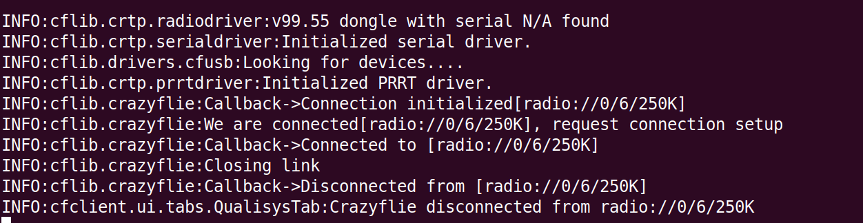 i am having the same issue as before: a crazyflie would be found during a scan, connect to the crazyflie, the terminal says that it's connected to the the drone, but then no info is received. Here is a screenshot with a crazyflie with 2017.6: here is a screenshot from a crazyflie with software unkown to me, but the one that works (like I said, I inherited the creazyflies): Is there a way to check what firmware is on the second crazyflie? Although I bet that it's custom...