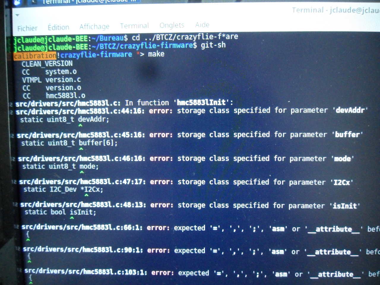 I am studying calibration process in crazyflie. For this I wanted to compile magnetometer's driver. But I have a lot of error messages.