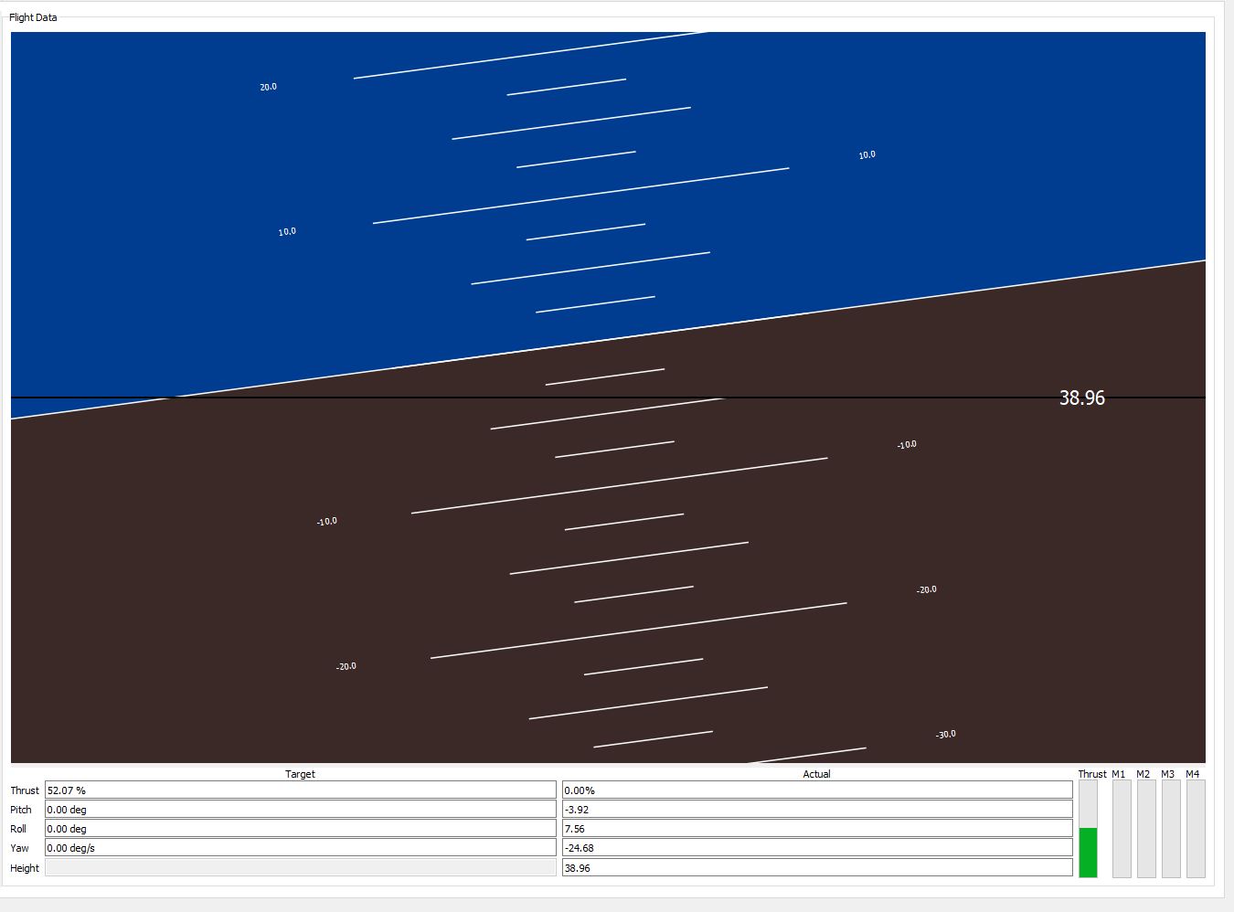 The artificial horizon seems to reflect the manual tilting of the robot, but when kept on a level surface, the horizon shows the attitude bias again.
