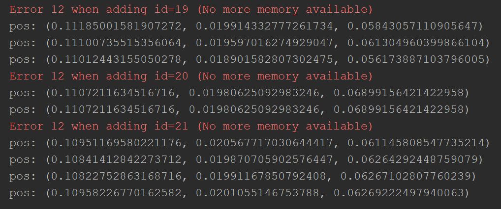 Error no LogEntry to handle id=12Furthermore, when I want to read a real-time position data, I somestimes see following errors: