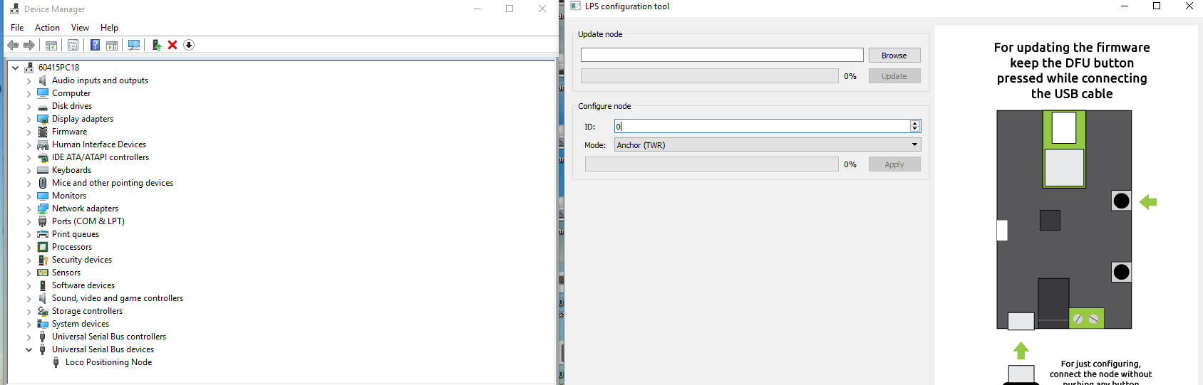 If I just plug the LOC node into the computer, My Device manager shows Loco Positioning Node