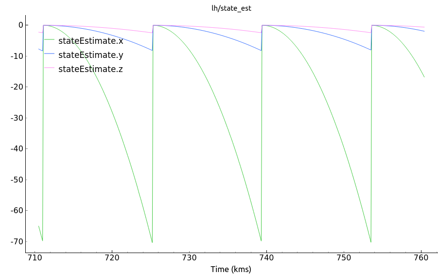 Now, when I check the cfclient, the raw and compensated angles plot change as I move the drone around. But the problem is that the x,y,z state estimate plot is messed up. It does change when I move the drone around but the values are not reasonable. And in the console, I get the "ESTKALMAN: State out of bounds", resetting message.