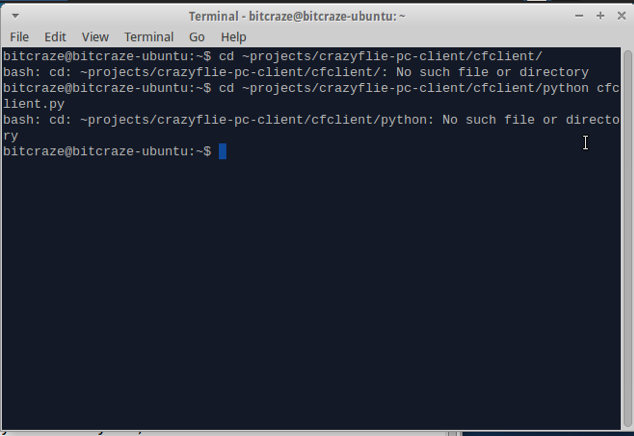 This command tells python to run the program 'cfclient' that's located in the 'bin' directory.