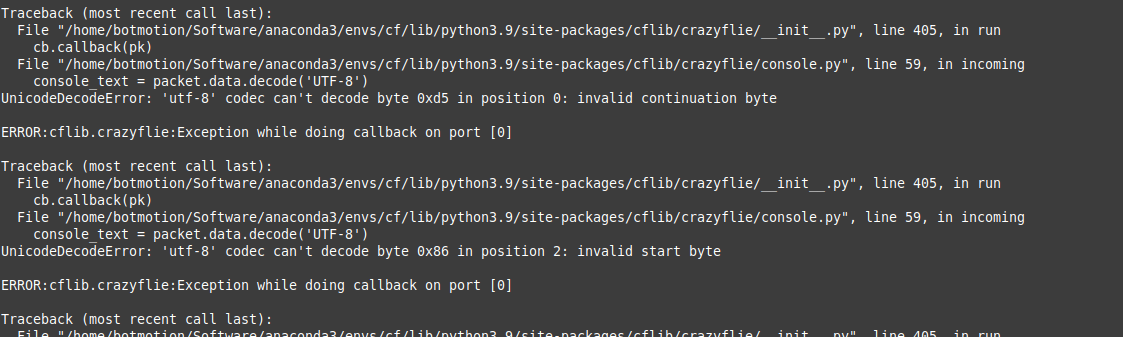 I obviously receive the header both on the flie as well as in the cfclient, but why does all this other stuff show up? 0xBC - that sounds familiar. Is this part of the crazyradio protocol, and if yes, why does it appear?!