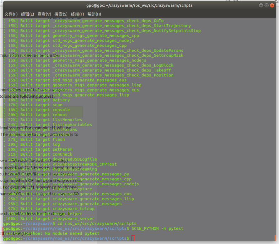 Hello everybody. When I install the environment of the crazyswarm follows the https://crazyswarm.readthedocs.io/en/la ... ation.html, but, when I run the $CSW_PYTHON -m pytest, it reported an error
