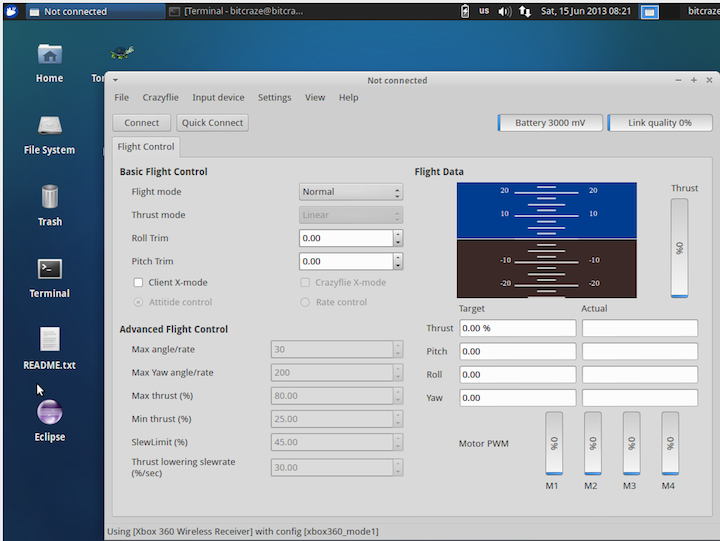 8. Plugin your Crazyradio dongle (if it isn't already). Open another Terminal and in that start your crazyflie client.