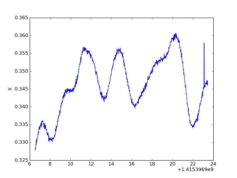 My oscillations seem to be around 4 cm, which isn't a big number, but it's not smooth flight at all. (attached plot of the vertical position over time, with the desired position being at .4)