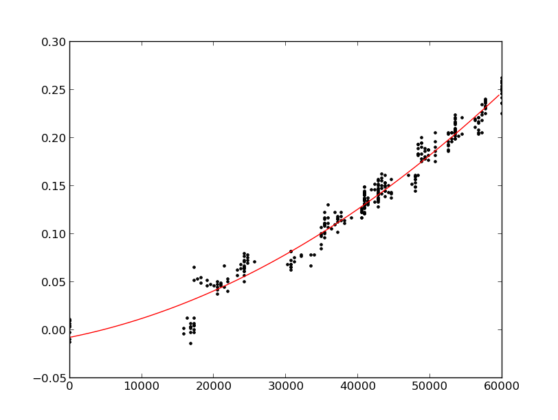 As we cannot get the current directly, I used the value of thrust command sent to the quadrotor instead. Then I experimented by increasing the thrust gradually and obtain the magnetic reading. Plotting the graph of thrust vs mag, I found it is not exactly linear, but maybe better approximated as a quadratic relationship.