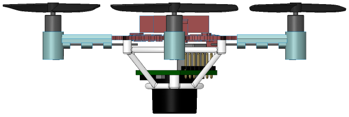 In the meantime I designed a mount for the sensor. The plan is to get a 3d print using Selective Laser Sintering from Trinckle. Made from PA, it weighs about 1.2 grams. Later on there will be a support for the step-up regulator NCP1402 providing the 3.3 V for the sensor.
