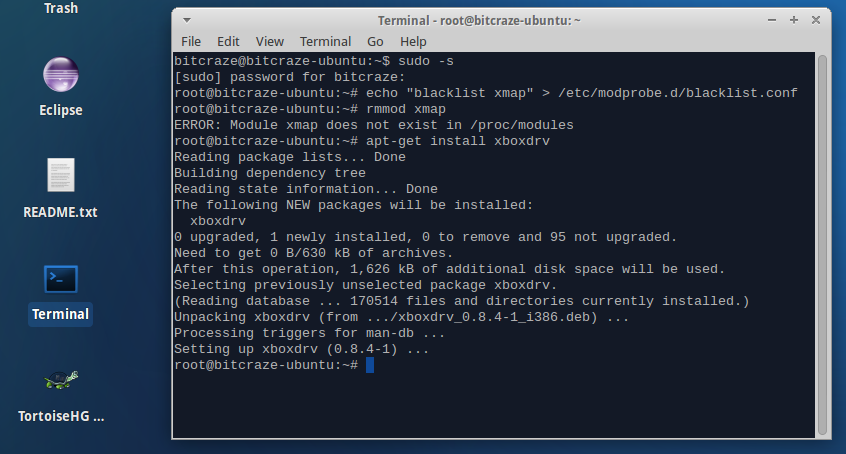 apt-get install xboxdrv and hit Enter. It should probably say something like