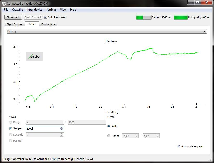 It does seem to take some charge, the graph is not the short period after the motors stop when it jumps back up, it seems to actually be charging. Especially since I tried to deplete the battery for the test (CF was tied down, was trying to calibrate it).
