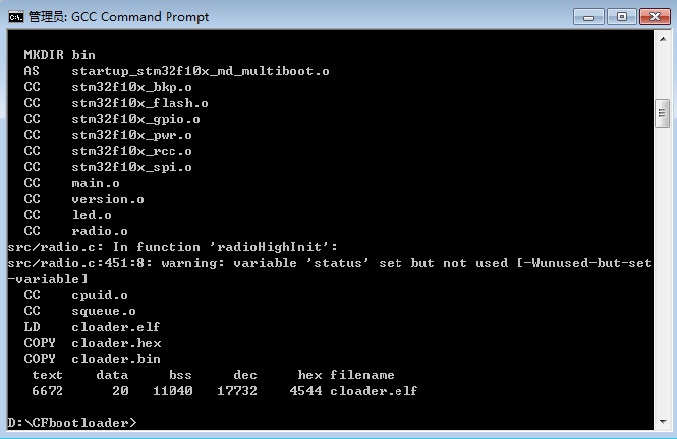 ......My purpose is how to compile the CF 'S firmware, not in order to compile the CF' S BOOTLOADER firmware (this only to test the function). I have been in the GCC installed in the Windows 7 ARM Emb and python 2.7... Is not installed any other things (such as openocd...) .