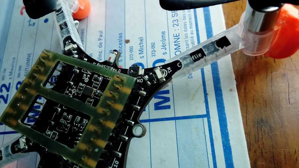I planned to reinstall the whole firmware. Unfortunately, the solders of the usb connector of my cf are broken. Not long ago, I could only fly by changing the battery. So, to reinstall firmware, I think I have to use a JTag system.... But I don't know how to do. I have the JTag microcircuit to connect to the cf, but I have to buy an USB connection cable. Would you have a precise reference?