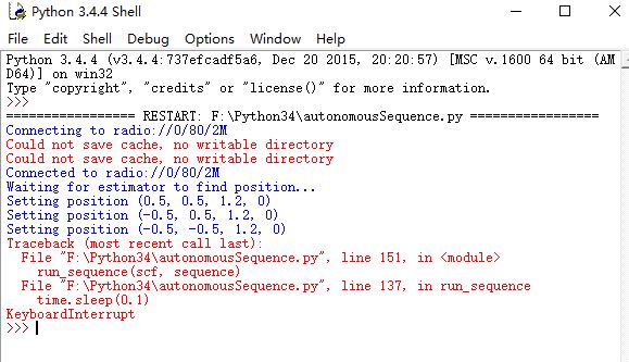 But it printed "could not save cache,no writable directory" and the cf just ramped for a little while without taking off.So I stopped running the code by pressing Ctrl+C.I wonder why this would happen. thanks for any comments!