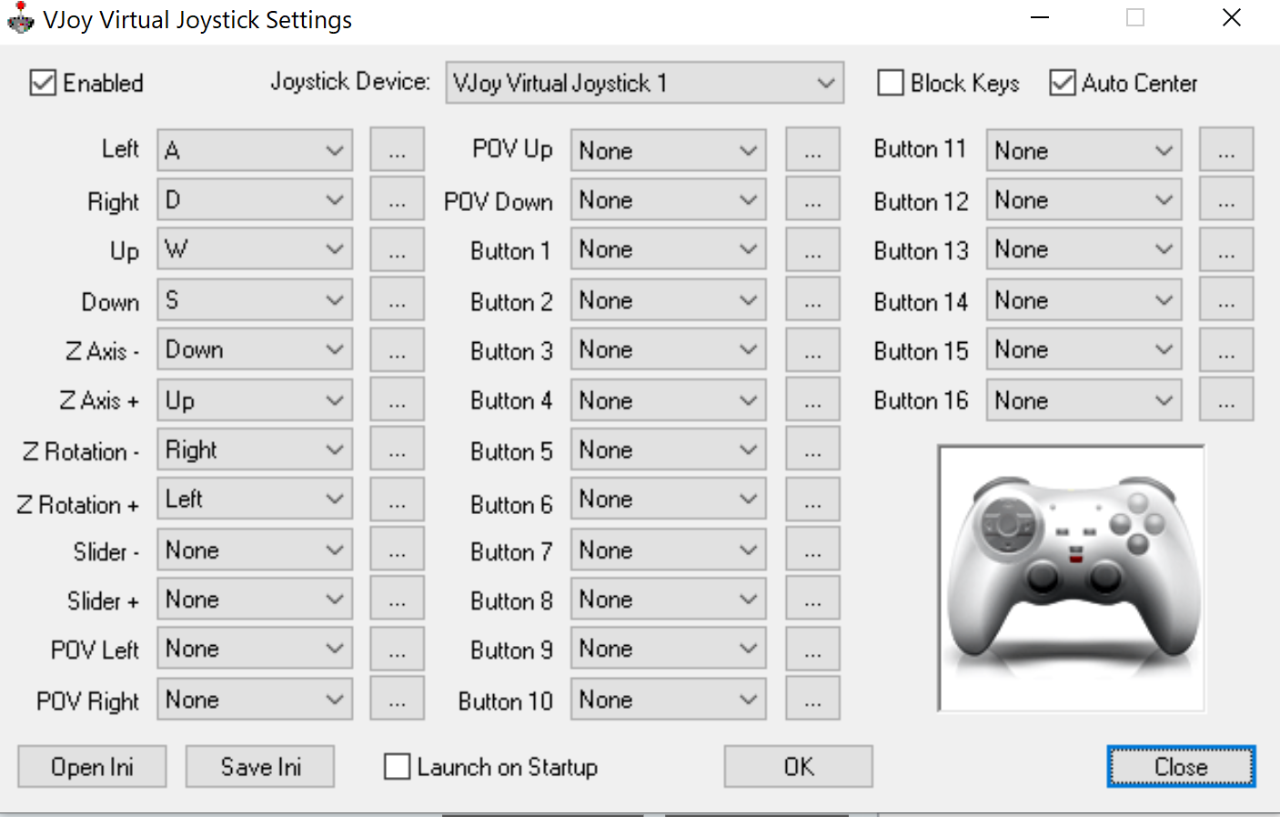 So these instructions does say that the controller requires to have '4 analogue axes' to control the crazyflie manually. I can not see that simulated in the vjoy setting.