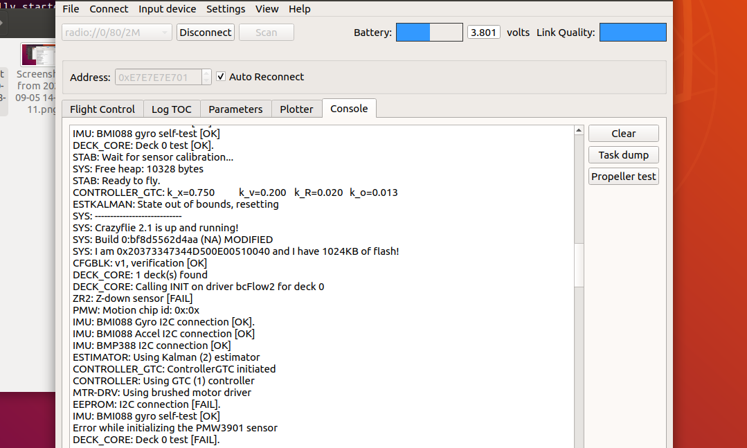The first error I get involves the red led blinking fast 5 times (crayzflie fails to initialize). I get the following output from the cfclient console: