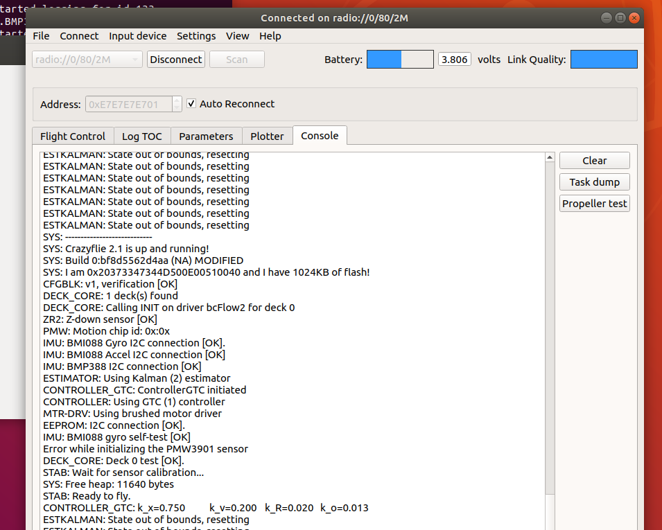 With the second error, the crazyflie initializes, but only the z ranger sensor is working (sometimes it doesn't work either). The following is the console output.