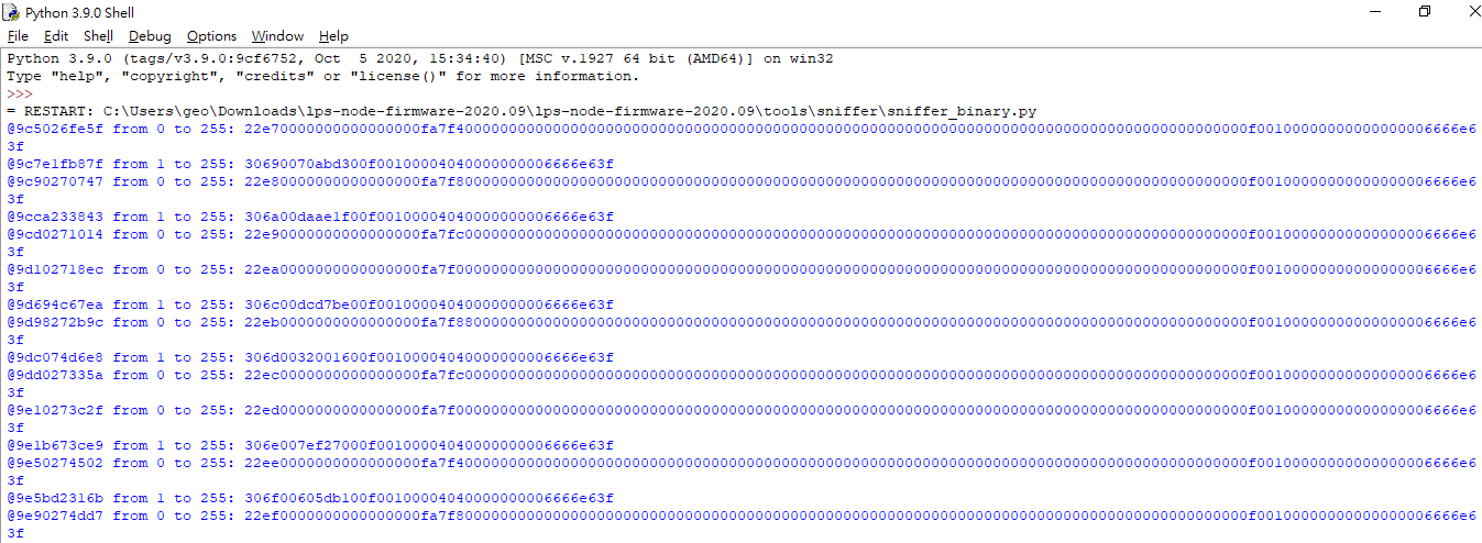 I'm the beginner of Python but can run sniffer_binary.py to dump the log over shell, seen attachment.