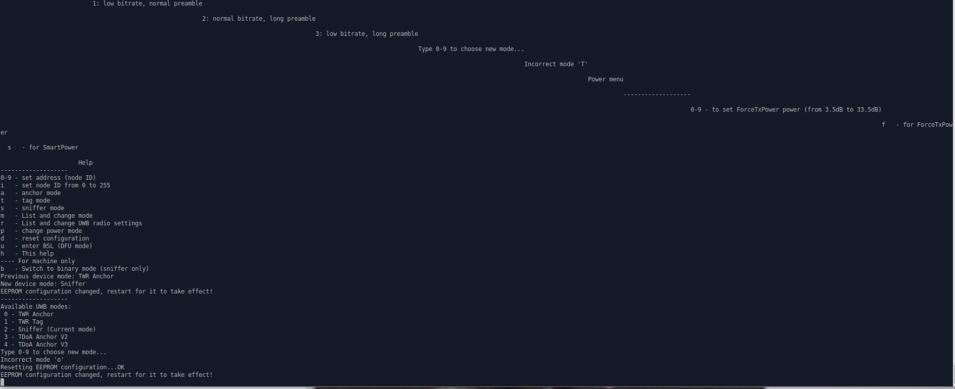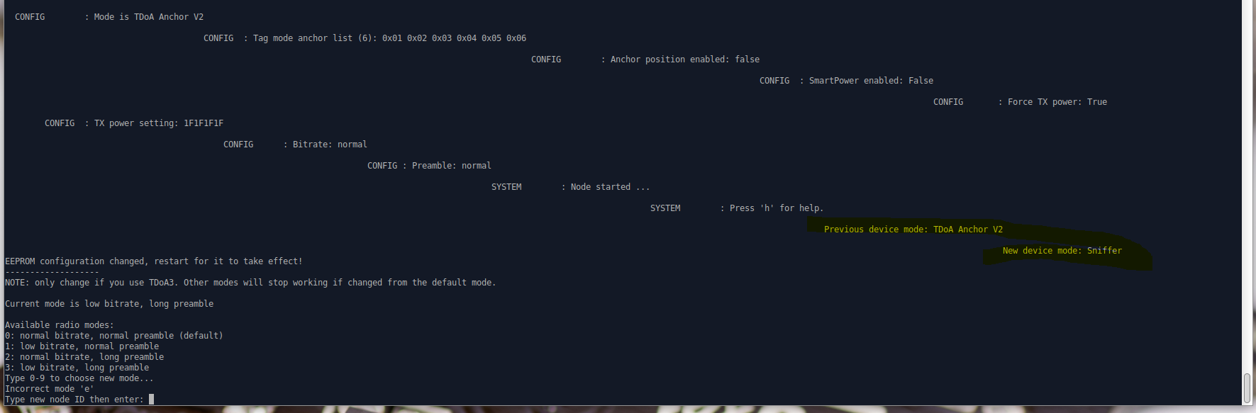 1. When I select the configuration, it shows that EEEPROM configuration changed, restart for it to take effect. What does it mean by restart? Does it mean that I just need to press the reset button on the node?