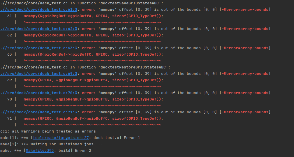 .//src/deck/core/deck_test.c:62:3: error: 'memcpy' offset [0, 39] is out of the bounds [0, 0] [-Werror=array-bounds]